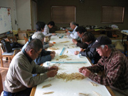 花の舞の地元、遠州地方(静岡県西部地区)で山田錦を栽培する契約農家のグループ「静岡山田錦研究会」では、11月11日に行われた「成分分析会」をもって、平成21年度の全体活動は終了しましたが、その後、12月9日に鈴木良紀会長はじめ会員と事務局(花の舞)、JA職員が集まり「稲体の形態調査」を行いました。