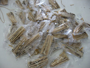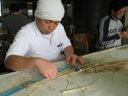 この他に、稈基重(かんきじゅう)の測定も行われます。これは、平成18年度から行われているもので、稲一株のいちばん下の地ぎわを切り落とし、そこから上10cm分を切り取ります。そして、1本1本の皮をむき芯だけ残し、その重さを計り、10本当たりの重量に換算した数値を出します。