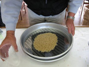 また、今回は11月に行われた成分検査会でできなかった、米の大きさの測定も行われました。 刈り取り、乾燥・もみすりをして、大きさを分ける選別機にかける前の米を会員全員に提供してもらい行うものです。