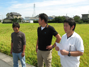 巡回には花の舞の蔵から事務局の斎藤副杜氏と蔵人鈴木裕司さんも参加しました。今回の圃場評価の方法について土田杜氏は、「青木君と二人で話しをしながら決めました。蔵の斎藤君も鈴木裕司君も側でそういう話しを聞いているので、自分の中の情報としてインプットしてくれたのではないでしょうか。彼らが農家のみなさんと交流しながら信用を得ていくことも大切だと思います」と語ります。