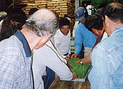 一つひとつ確認していくため、作業は約2時間を要しましたが、この間、会員たちは他の人の苗を確認したり、情報を交換したりと有意義に過ごしていました。