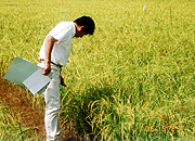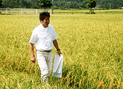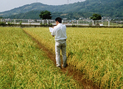 9月25日、26日の両日、静岡山田錦研究会の今年最後の圃場巡回が行われました。これは、刈り取り前の全会員の全部の圃場(田んぼ)を花の舞の土田杜氏が視察し、A・B・Cの3ランクで評価をするものです。 杜氏による圃場の評価は、「生産者として杜氏がほんとうに酒をつくりたいと思うような山田錦をつくらなくてはいけない」との研究会の考えから、平成13年より実施されており、今年で6回目となります。