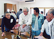 ![]() 今年の活動の総括をする鈴木会長(中央)![]() ![]() 栽培指導をする乗松相談役(中央)![]() |