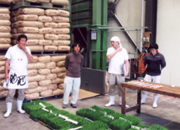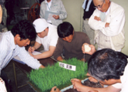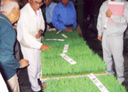 < 田植えを前に「苗持ち寄り研修会」を開催。山田錦らしい力強い苗が揃う。 > | |