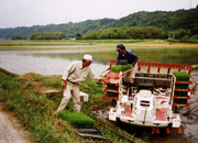 ![]() 田植え前の苗![]() 乗松相談役と息子の浩二さんの |