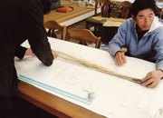 ![]() 作業小屋で保管されている会員全員の稲![]() 稲の長さの測定![]() 稲の長さの測定![]() もみの全数をかぞえる![]() 稈基重(かんきじゅう)の測定準備。 |