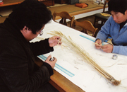 花の舞の地元、遠州地方(静岡県西部地区)で山田錦を栽培する契約農家のグループ「静岡山田錦研究会」では、11月下旬に行われた「成分分析会」をもって、平成19年度の全員による活動は終了しましたが、その後、12月に鈴木良紀会長をはじめ役員と事務局(花の舞)が集まり「稲体の形態調査」を行いました。