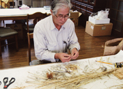 この他に、稈基重(かんきじゅう)の測定も行われます。これは、平成18年度から行われているもので、稲一株のいちばん下の地ぎわを切り落とし、そこから上10cm分を切り取ります。そして、1本1本の皮をむき芯だけ残し、その重さを計り、10本当たりの重量に換算した数値を出します。