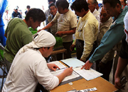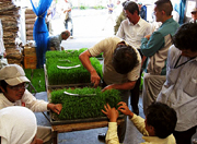 全員の苗を一つ一つチェックして最適な田植え日を決める。