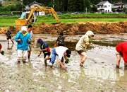 < 「からっ風会」のメンバーによる田植えの体験 > | |
